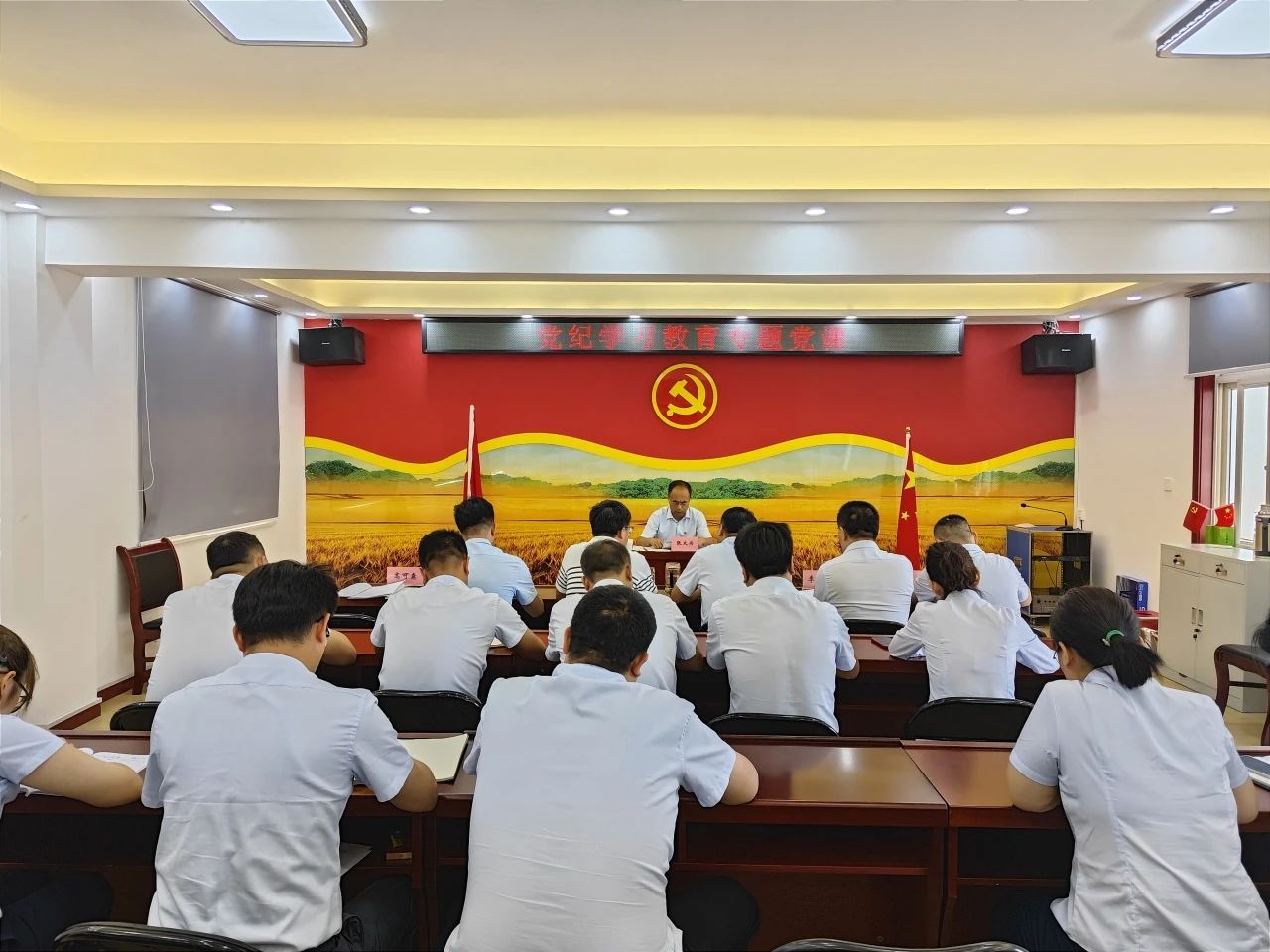 座談會(huì)上,張大為首先聽取了糧油市場(chǎng)黨紀(jì)學(xué)習(xí)教育工作開展情況匯報(bào),詳細(xì)了解了上半年市場(chǎng)在招商運(yùn)營(yíng)、貿(mào)易合作、安全生產(chǎn)等方面工作進(jìn)展,分析研判了當(dāng)前市場(chǎng)發(fā)展形勢(shì)并提出希望。隨后,張大為從加強(qiáng)黨的紀(jì)律教育的重要性、學(xué)深悟透黨的創(chuàng)新理論和法規(guī)條例、自覺學(xué)紀(jì)知紀(jì)明紀(jì)守紀(jì)以及奮力開創(chuàng)集團(tuán)和糧油市場(chǎng)事業(yè)發(fā)展新局面等方面為與會(huì)人員作了專題授課。