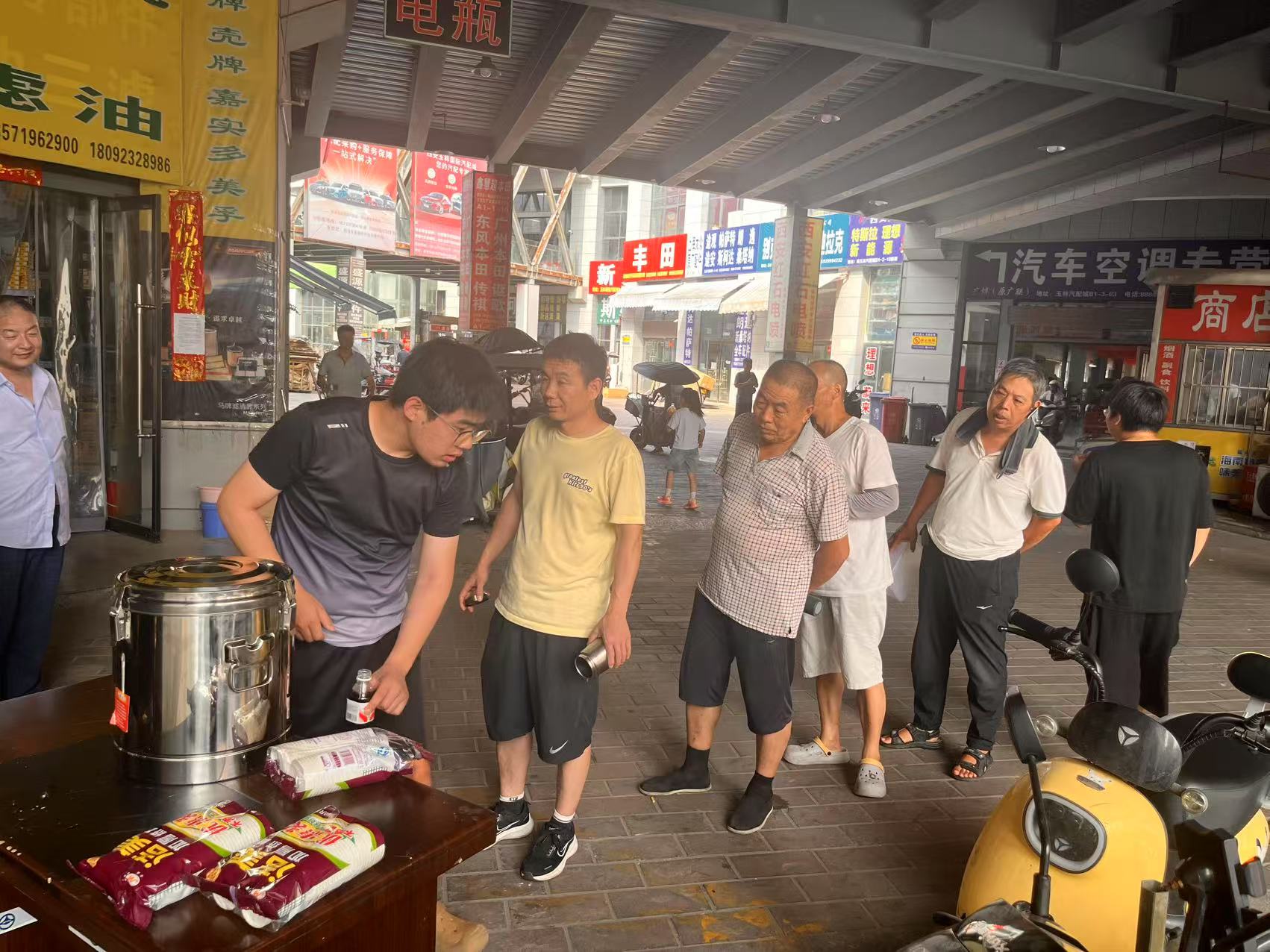 7 月 16 日,玉林公司以黨建品牌 “紅引擎·燃動力” 為抓手,組織20余名黨員干部成立志愿服務隊,啟動 “夏日送清涼” 活動。500 份現(xiàn)場熬制的綠豆湯裝入保溫桶,清甜香氣中透著市場對商戶和消費者的牽掛。志愿者分發(fā)降溫飲品并與商戶親切交流,詳細記錄商戶對市場服務的建議,普及防暑知識,手把手教學中暑應急處理技巧,將 “服務商戶、助力經(jīng)營” 的理念融入每一個細節(jié)。